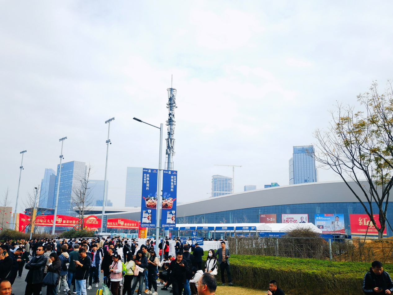 在現(xiàn)場安檢處,接近70米跨度的大型門樓廣告特別引人注目,熙熙攘攘,人頭攢動(dòng),“鮮艷”、“熱烈”的“紅”能一下子吸引大家的眼球。紅99品牌,匠心藝術(shù),耀眼奪目。