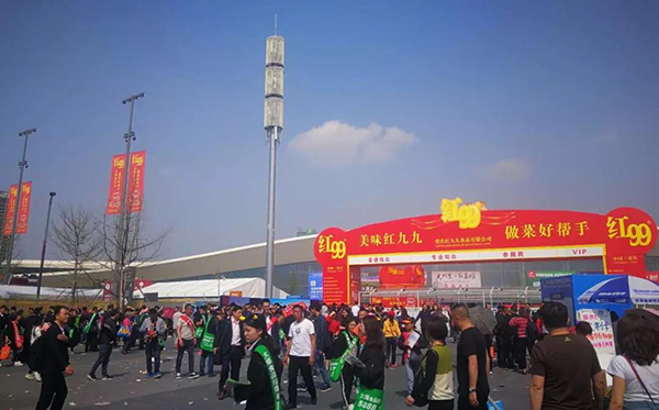 2018年3月22日第98屆成都春季糖酒會(huì)在中國(guó)西部國(guó)際博覽城國(guó)際展覽展示中心開幕。和往年一樣,呈現(xiàn)在他們面前的仍是場(chǎng)館內(nèi)外那一片片鮮艷的“99紅”。