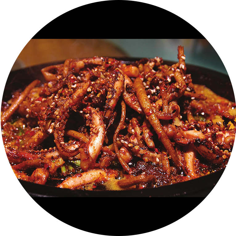 4、待底料炒散之后,將瀝干水的魷魚須下鍋大火翻炒1~2分鐘;轉(zhuǎn)小火加入白糖,花椒面,辣椒面;翻炒一會兒關(guān)火,裝盤,散上蔥花。